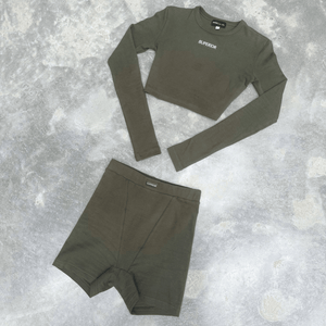 Effortless, elevated, and made to move with you. The Superior Khaki Long Sleeve Crop Top is crafted from our signature sculpt-fit fabric — buttery soft with a luxe finish that contours and smooths. Designed with a luxe appeal, this long sleeve is the definition of street-luxe comfort. Pair it with the matching shorts for a complete off-duty look that says refined but relaxed.
